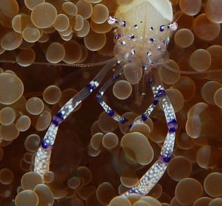 jumping shrimp, Thor amboinensis. Often waves its tail, sits outside anemones. Also called “Sexy shrimp”