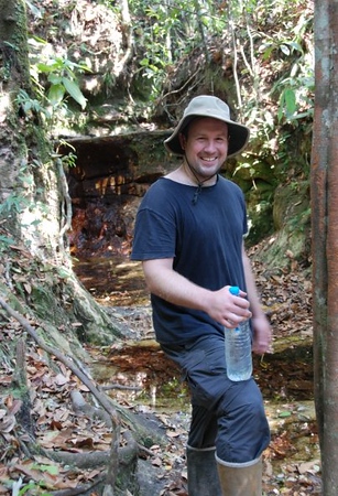 Here I am in Brazil at the geodesic center of South America, wearing my “cobra protection” boots – about to hike into a cave.