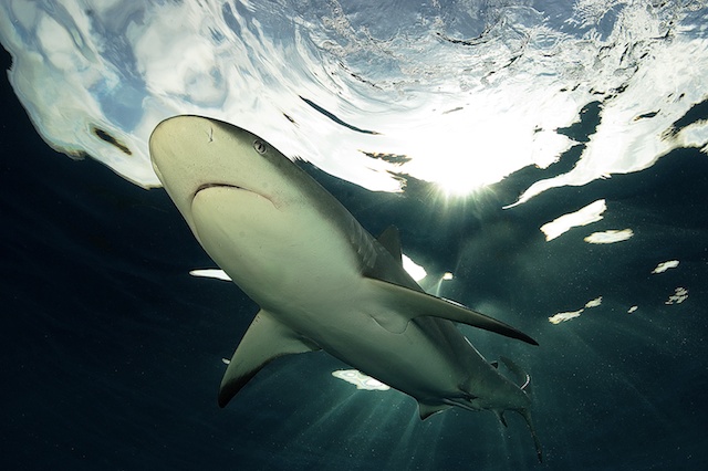 Caribbean reef shark was dutifully posing so I could change my shutter speed to get the light rays.