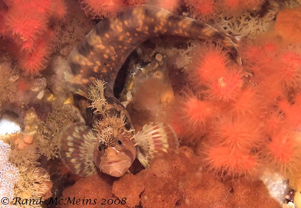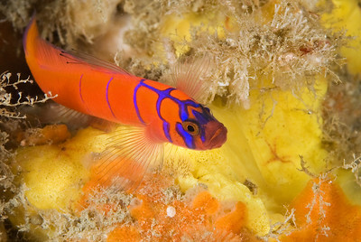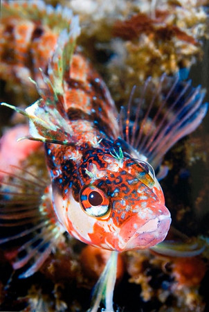 When I saw these reds and yellows together, I took extra time to try to get a shot of this skittish goby. F11, 1/320th, ISO 250. Catalina Island, California.