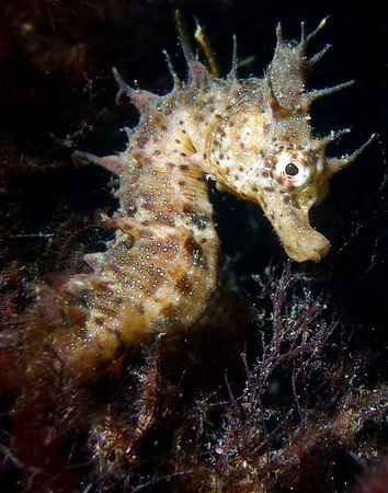Filling the frame with the seahorse gives it a nice perspective. D300, 105mm lens, Lembeh strait, Indonesia. F4, 1/100th, ISO 1500, lit by my dive light.