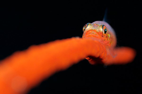 A nice examples of “lieading lines” leading up to the subject. D300, F16, 1/250th, ISO 200. 105mm lens with a Subsee wet diopter. Photo by Keri Wilk. Goby shot in Bali, Indonesia. Compositions like this are usually quick tricky to get right.