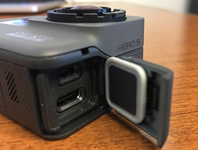 The GoPro HERO5 is waterproof down the 33ft (10m) without the housing, due to a more robust build than previous GoPro models. New waterproof features include a new removable lens cover and rubber seals to protect the battery / Micro SD card compartment and the HDMI / USB compartment.