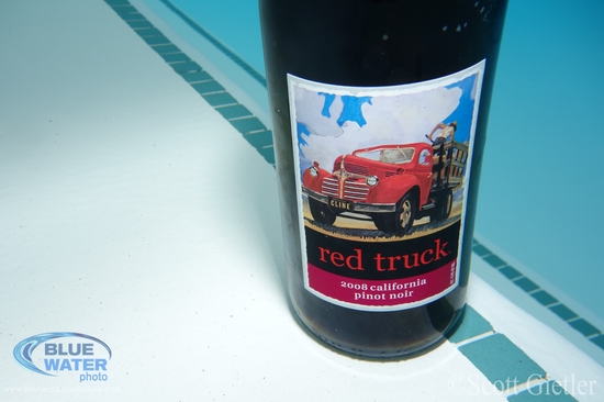 100% crop of a Sony RX-100 photo, taken underwater. The full-size photo of the wine bottle can be seen just below this photo. Given that this is a 100% crop, the detail is amazing. You can see individual lines & dots of the half-tone printing style on this wine bottle very clearly, even the tiniest lines are not blurring together at all. The demarcation between the different colors is also very clean and crisp.
