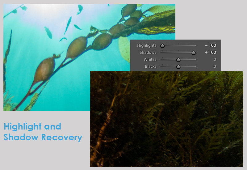 In the sample image below you can see the full range of the Canon 5D Mark IV, which holds detail in the brightest overexposed water (upper left corner) all the way down to the dark underexposed shadows in the lower left corner. In the subsequent image I’ve recovered the highlights and the shadows 100%, which brings back a significant amount of detail and even nice color from the shadows.