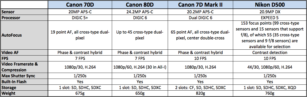 Canon 80D Spec Comparison