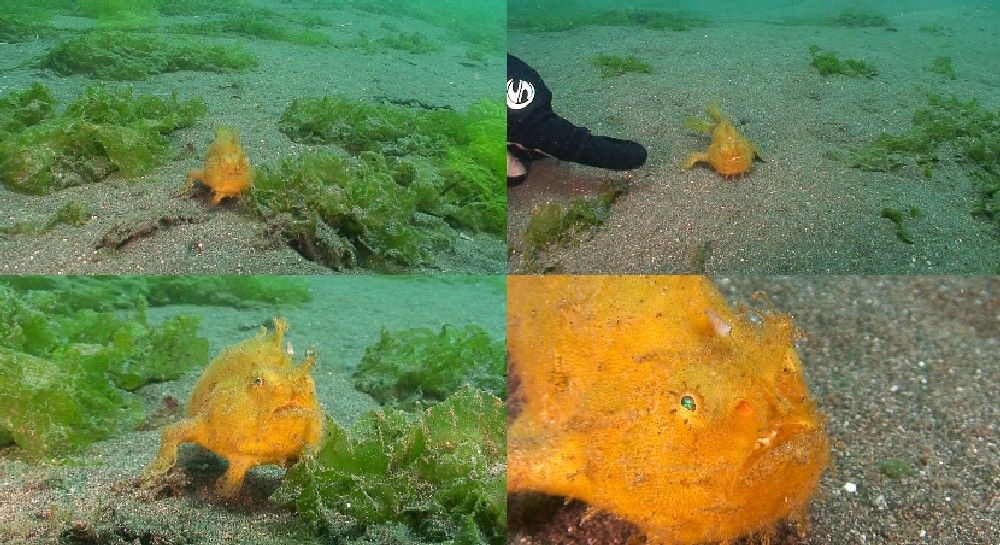 Each kick of your fins makes the camera wobble for a moment, so try panning over or past your subject by frog-kicking. If you get a strong enough start, you can film a nice long, stable shot while coasting after each kick.