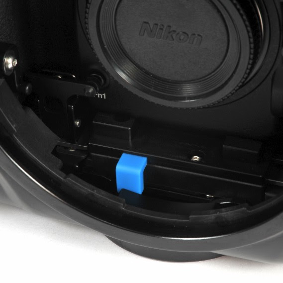 No system is easier to assemble or break down. The camera drops into the housing with a quick release camera tray. The camera tray has an extending bracket that allows the AF-M selector to be easily positioned to match the camera. No controls need to be preset, as housing functions for dials and switches align automatically (on/off, af-m, still photo/video). The large 120mm housing port opening allows even the largest popular pro Nikon wide angle lens (14-24 /2.8G) to be used, and the camera can even be mounted in the housing with this large lens attached.