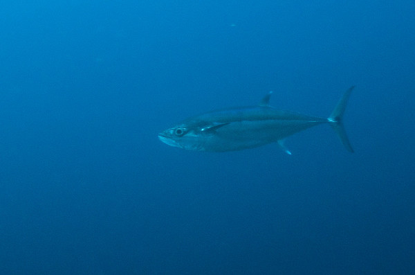 tuna. we often saw tuna hunting, usually deeper. this one swam very close to me and quickly raced by.