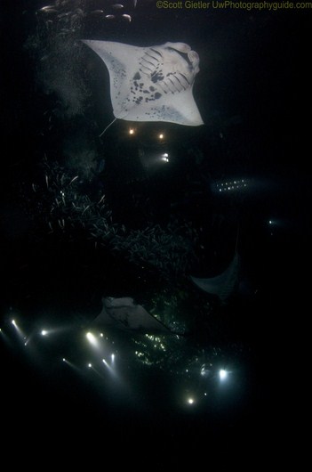 There would be several other boats at the site, and the divers from all the boats will be in a large circle. Each dive boat will put uniquely colored dive lights on the tanks. Do not touch the mantas. No snorkels allowed for divers. Hold the dive lights pointing upward next to your head. The mantas will feed on the plankton the dive lights attract. Every diver will be given a strong dive light. Our DM would be taking video of the dive, which would be available for purchase after the following day.