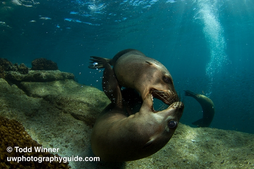 The number one destination for experiencing sea lions has got to be La Paz, Mexico. It is easy to get to, has clear, warm water, and is host to large quantities of sea lions. Anacapa or Santa Barbara islands in Southern California and the Northern Sea of Cortez are other destinations where you have a good chance of playing in the water with these guys. Read our La Paz guide.