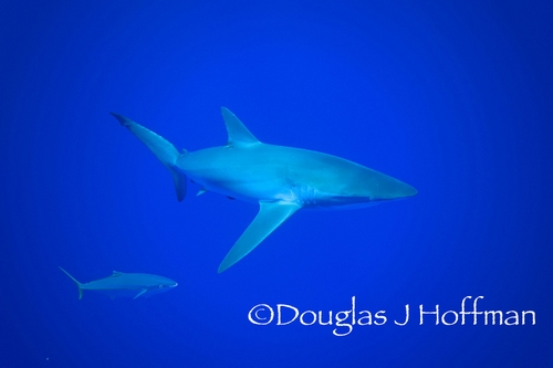 When photographing large animals in the blue, strobes are not used. They create drag and are not powerful enough to light up a sharks, school of dolphins, or whales. So the best thing to do is work with Ambient light. When possible keep the sun behind you and allow it to illuminate the subject.