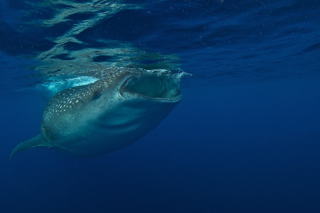 With the ability to filter 1,500 gallons an hour, the whale sharks gorge themselves on the fish eggs. Nikon D2xs, Tokina 10-17mm at 10mm, F8, 1/160th.