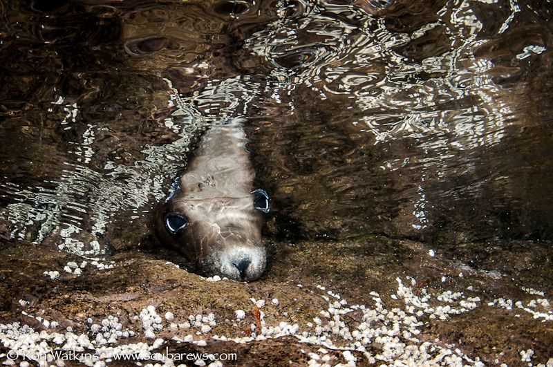 About the shot: I was attempting to do an over/under shot of this sea lion pup resting on a rock above water. After going under to readjust camera settings a few times, I noticed the pup was curious and sticking his head under water to see what I was doing. So I seized the opportunity and took a series of photos of her peeking at me.