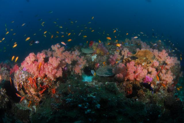 What we saw at Tofo was great POTENTIAL. If the water was clear and warmer, which probably occurred the day after we left (smile), it would be fantastic. Tofo has some beautiful, Fiji-like soft corals (dendronepthya) which took us by surprise, and very abundant fish populations including large groupers on almost every reef. Interestingly, the red-toothed triggerfish is the staple of the reef. Tofo is not known for lush reefs, which can be found further north in the Bazaruto. There you will find nice lush reefs but a lack of megafauna – it would be a nice combo trip.