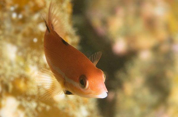 Baby sheephead at Catalina Island. F8, 1/250th, ISO 200. Fish portraits can be hard work, It took me dozens of dives to get this portrait, skittish fish usually are turning away or not at the right angle. I still wish I had a better background.