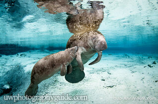 - Photograph the reflections of the manatees beneath the surface of the water. The white sand and the crystal water create beautiful reflections.