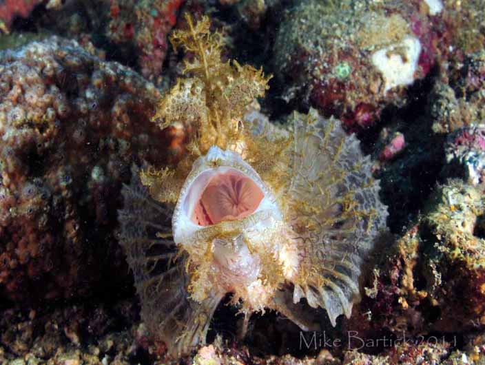 Like frogfish, another "gape feeder," the coveted shot seems to be the yawning behavior photo. Photographers have been known to camp out waiting for the photo op which occurs randomly and without notice. Is it stress that causes them to yawn? Are they creating a better seal for the strike? Perhaps we will never know the exact reason, but to watch one open up and yawn is too cool and really fun to photograph.