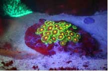 • Besides from apparently protecting themselves from the harmful effects of shallow water UV radiation, as a kind of sunscreen, corals seem to do this in order to feed their symbiotic algae, which live inside their tissues. In effect, the algae receive light from the sun on one side and light from the other side as the coral fluoresces. This allows the corals to dwell at greater depths, where corals without this capability are unable to thrive.