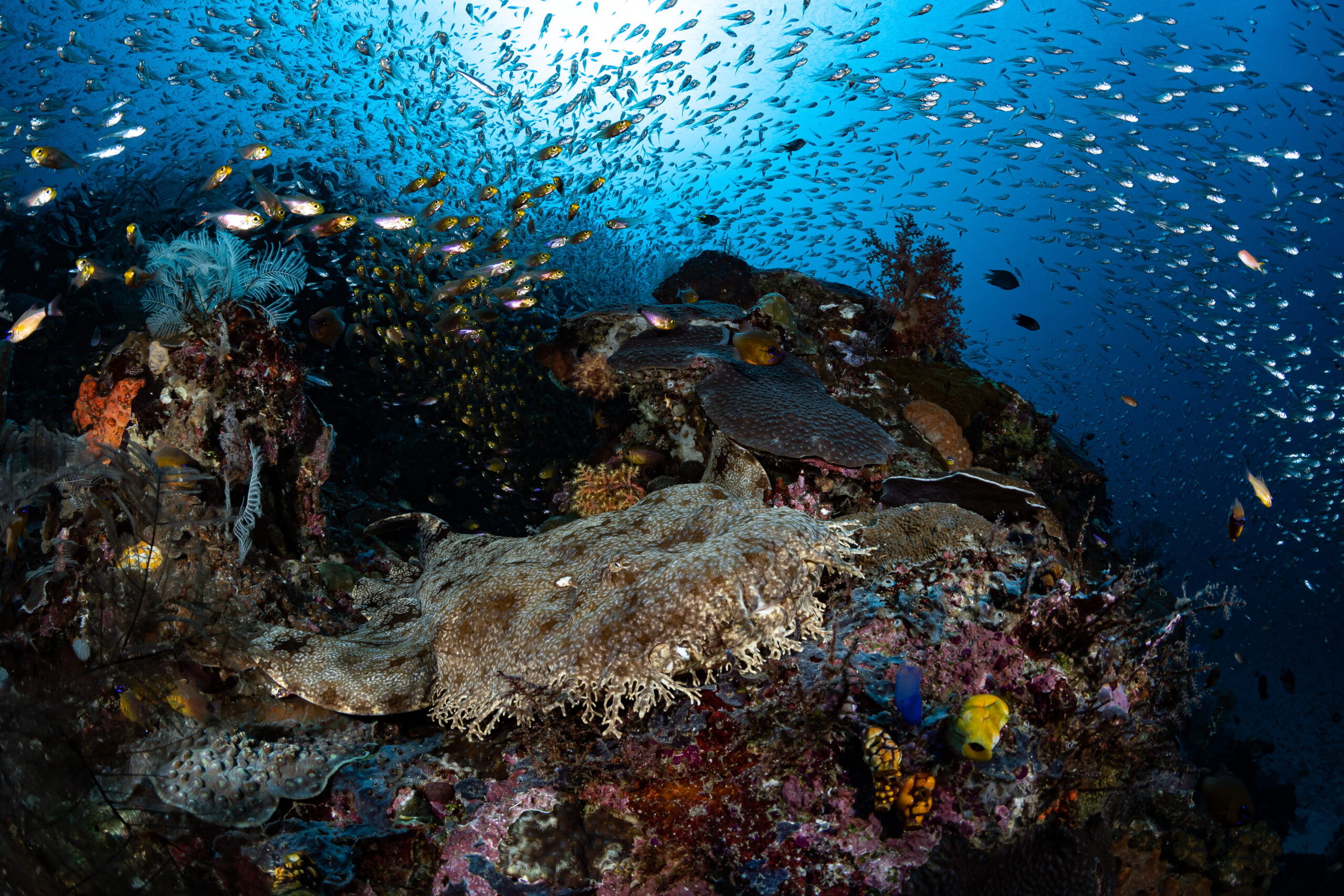 The picture was taken during a diving trip in Raja Ampat on board of Coralia Liveaboard in erly 2020. Due to Covid restrictions only few liveaboard were operating in Raja Ampat. We had the privilege to dive in one of the last paradises on heart in complete privacy enjoying an incredible experience.